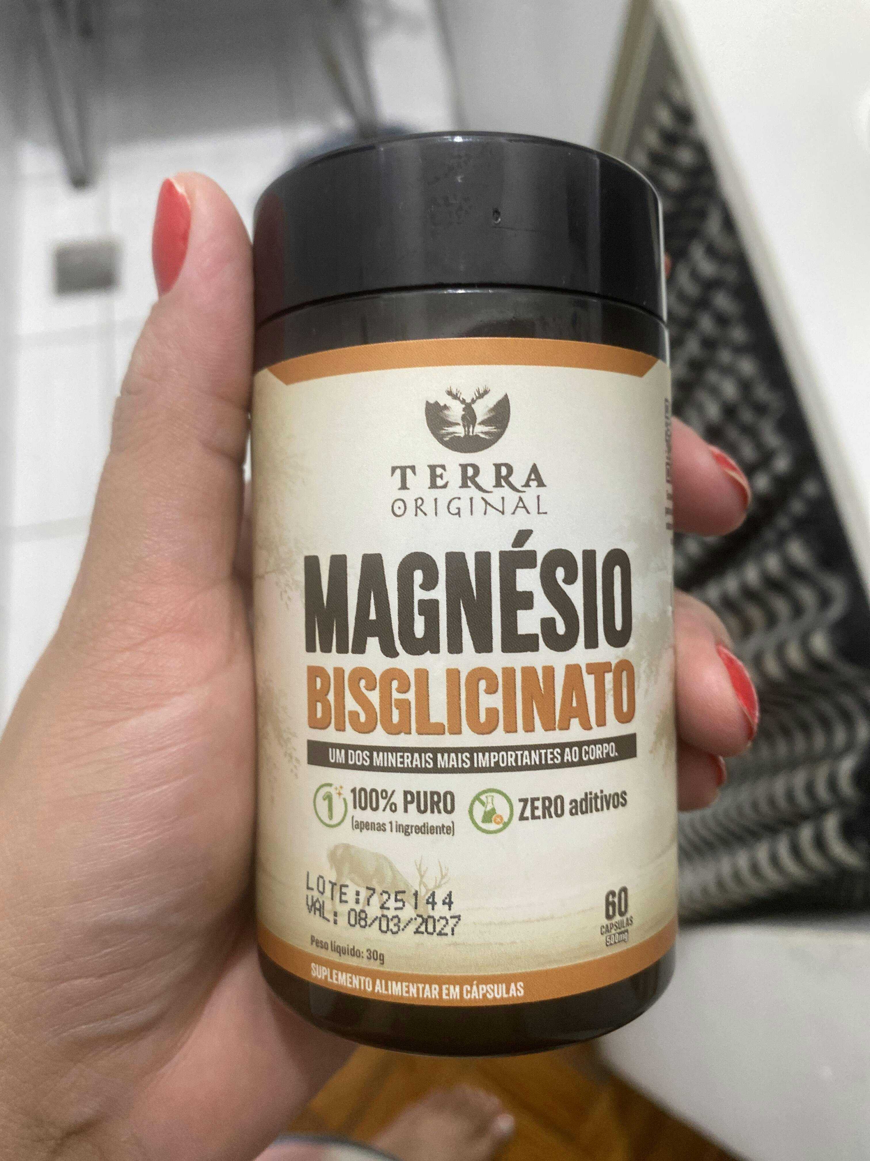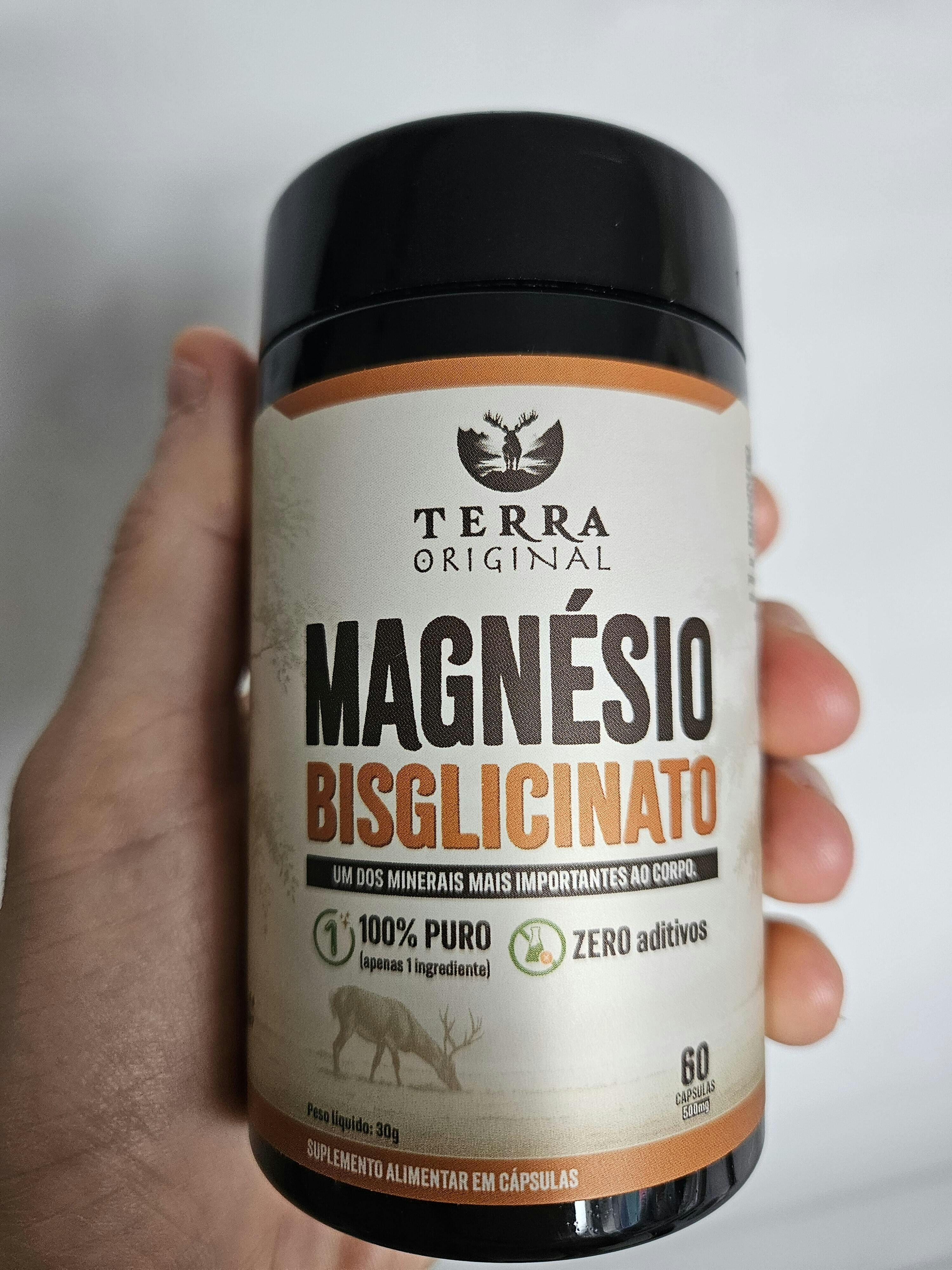 O magnésio TERRA ORIGINAL está na forma bisglicinato. Isso significa que o mineral está ligado (quelado) à 2 moléculas de glicina, um aminoácido anti-inflamatório naturalmente presente no colágeno.